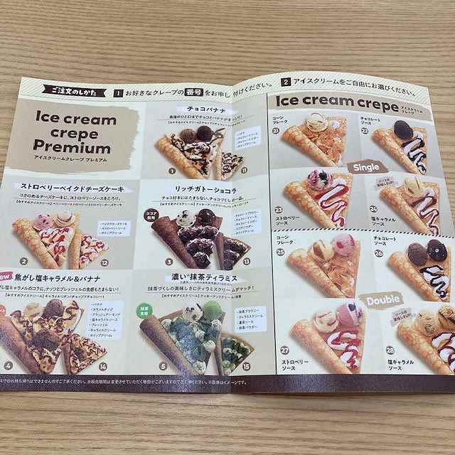 サーティワンでは、アイス以外にもクレープも注文できます。