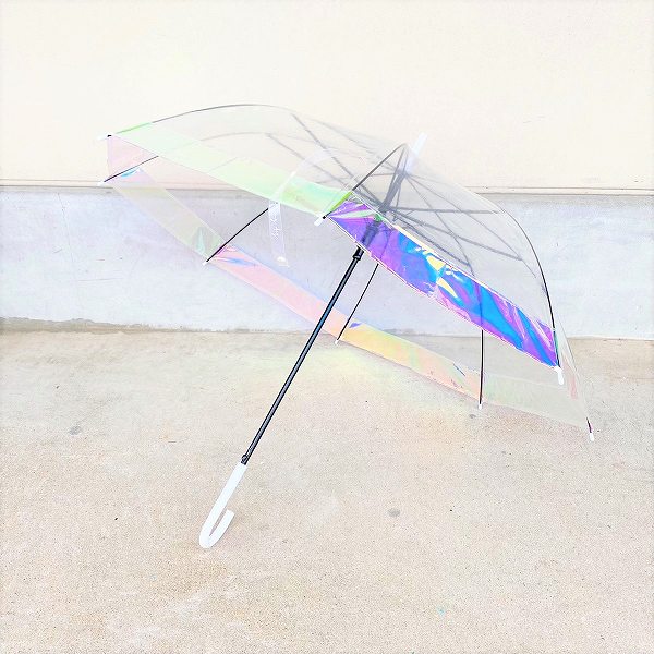 コンビニなどでサッと置く場合、シンプルなビニール傘だとすぐになくなってしまう事がありますが、オーロラ傘なら「自分の」という印にもなってくれそうですね!