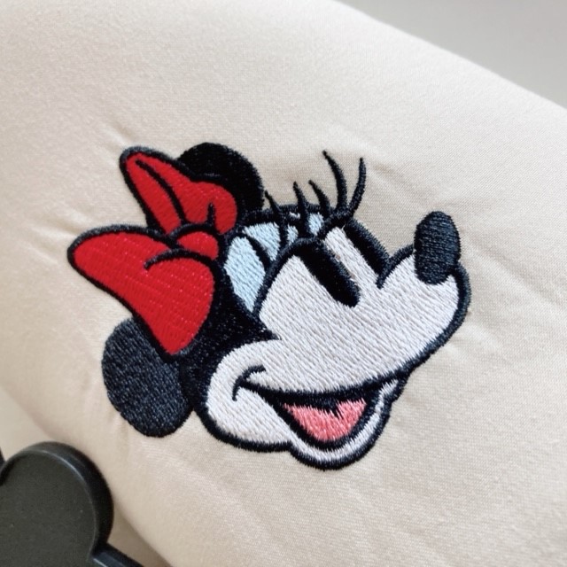 大きく全体にミッキーミニーの顔が刺繍されています。
