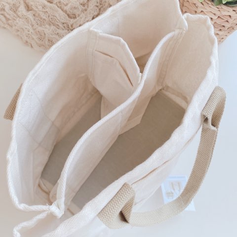3COINSのランチバッグ2個買いした😁中に仕切りあって、普段のカバンに使えそうと思ったけど、底は布が繋がってなかったから、小物入れたら中で移動するかも💦それ以外は結構しっかりしてて、色もナチュラルな感じで好き😊