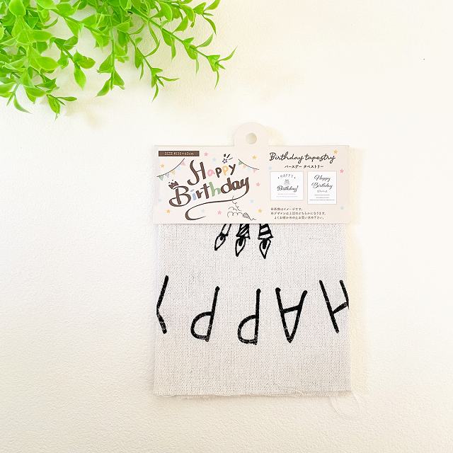 「Happy Birthday」の文字が描かれた、ナチュラルな雰囲気のタペストリーです。