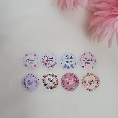 すべてのシールに「thank you」とメッセージが書かれたロールタイプのシールたち。