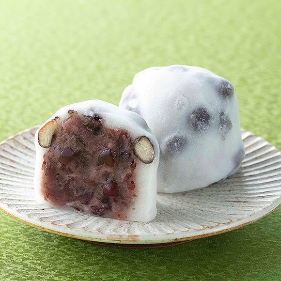 伸びが良く、白色できめ細やかで風味の良い最上級品種の宮城県産みやこがねを使用した柔らかく心地よい大福生地の食感、沖縄県産久米島の海洋深層水塩を使用し塩味の効いた風味の良い大粒の北海道産赤えんどう、程良い甘さと香り際立つ北海道産大納言粒餡、3つの味わいが調和した素材本来のおいしさが感じられる塩豆大福です。