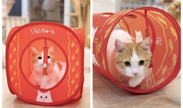 1番人気“まぐろ味”のパッケージがそのままデザインされた「キャットハウス&キャットトンネル」です!