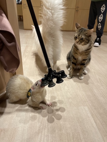 可愛いフェレットはおばあちゃんの杖がお好きみたい☺️☺️☺️