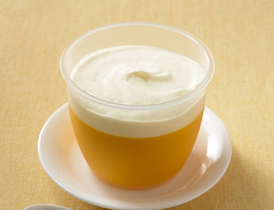 北海道産牛乳を使用した牛乳寒天に、みかんを盛りつけました。