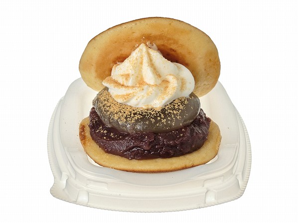 ふわっとした食感のどら焼き生地で、黒蜜を包んだもっちりわらび餅,ホイップクリーム,粒あんをサンドしました。