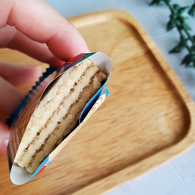 ただ、このウエハース、袋にぴっちりと隙間なく入っているので、開け方に困っている方も多いと思います。ハサミで切ってもなかなか出てこない。無理に押し出すとウエハースが欠けちゃいます。