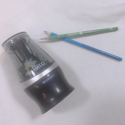 このコストコで購入できる電動鉛筆削りは手のひらサイズだし、電源コードもないので、持ち運びにもとっても便利!
