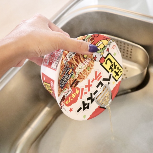 通常のカップ麺同様、お湯を入れて3分待ちます!