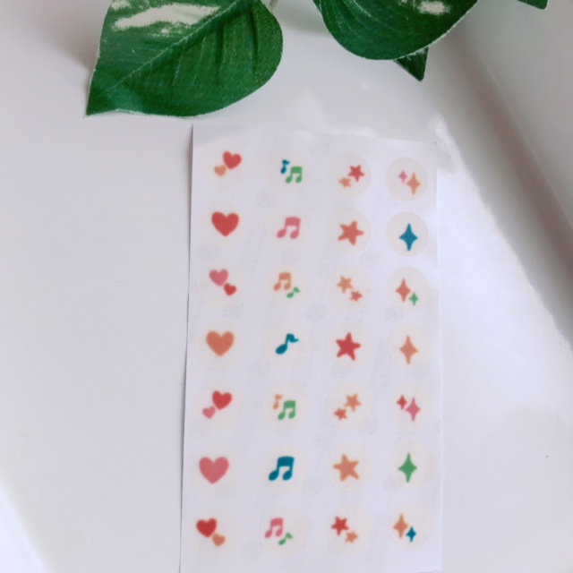 ハート・お星さま・音符が合わせて28パーツもあり、バリエーション豊富なので何に貼ろうかワクワク。