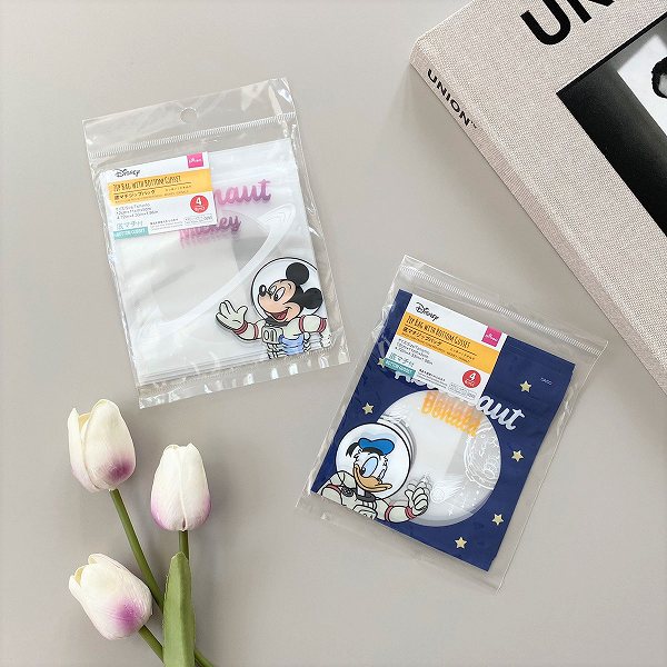 宇宙服を着たミッキーとドナルドが、それぞれデザインされた底マチジップバッグです!