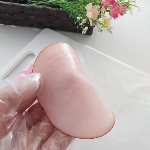 説明図のようにハムの上からこちらの商品を押して切れ目を入れ、くるっと巻くとハムがお花に大変身!!!