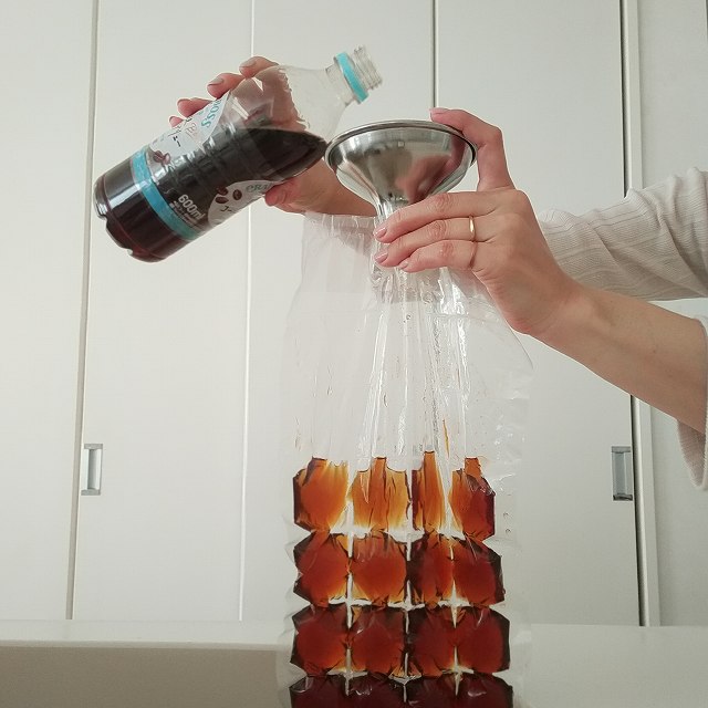 ダイソーのアイスバッグ使ってコーヒーを凍らせて氷代わりにすると、味が薄くなるどころかどんどん濃くなって美味しいからオススメ pic.twitter.com/QLMPqxIrCf