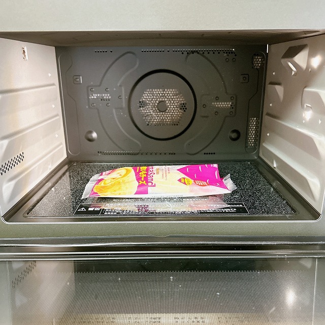 温めたピザサンドさつまいもチーズを袋から出すと、白い厚紙に入っています。