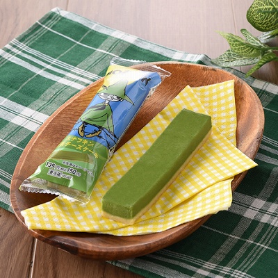 ムーミンのキャラクター「スナフキン」をイメージしたワンハンドで食べやすい抹茶味のチーズケーキです。