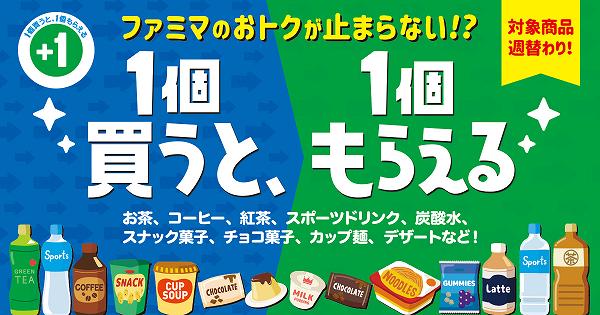 今週もファミリーマートの1個買うと1個無料でもらえるキャンペーンが大量発生!