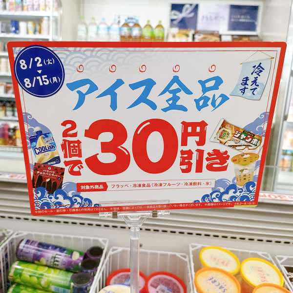 アイス全品2個で30円引き