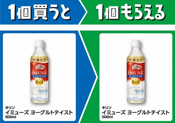 「キリン イミューズ ヨーグルトテイスト 500ml」を買うと「キリン イミューズ ヨーグルトテイスト 500ml」の無料引換券がもらえる!