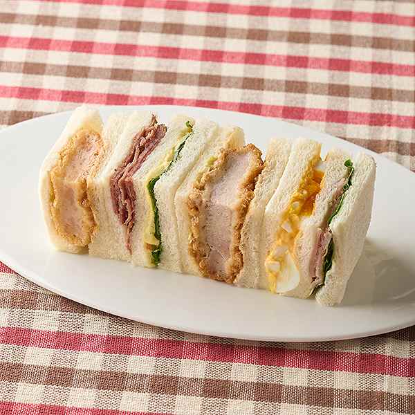 クリスマスから年末年始用のバラエティー感のあるボックスサンドです。エビカツ・パストラミビーフ・トンカツ・ハム玉子の4種類です。