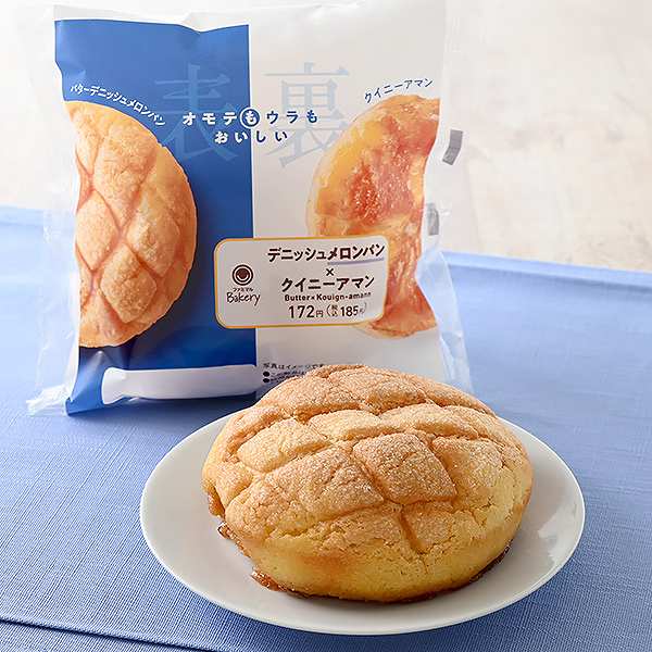 バター風味のビスケット生地をかけたデニッシュメロンパンの底に、発酵バター風味のあめを敷いて焼き上げました。
