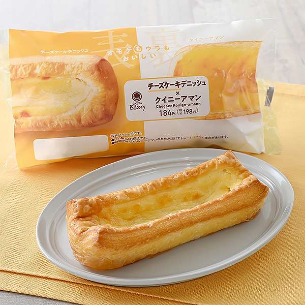 クリームチーズを使用したチーズケーキをしぼったデニッシュ生地の底に、発酵バター風味のあめを敷いて焼き上げました。