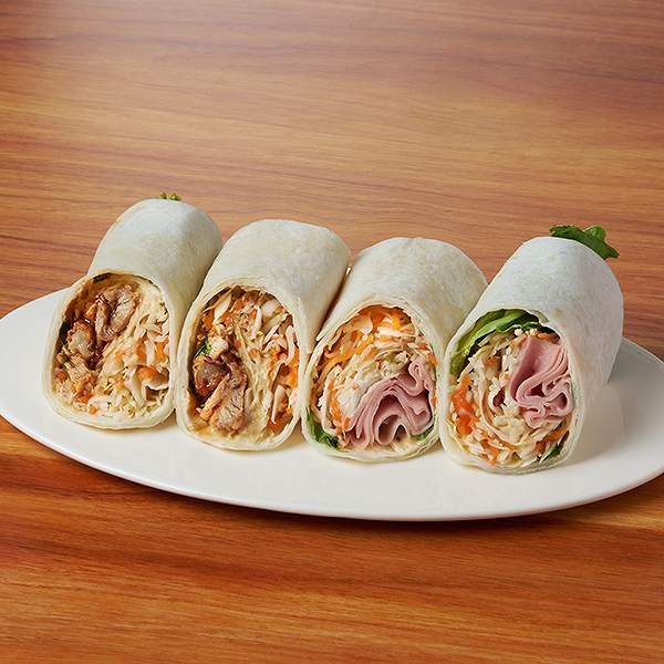 醤油・にんにく・しょうがなどで下味を付けたタルタルチキンとクリームチーズとハムを組み合わせたハムチーズの2種類のトルティーヤです。