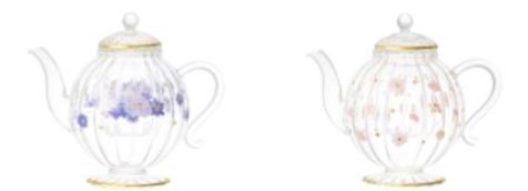 フリルの形状が上品なガラスウェアに、花柄のデザインを施したティーシリーズ!
