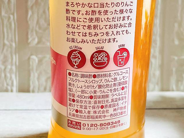 日本の企業が作ったものかと思いきや、イタリアから直輸入したりんご酢です。