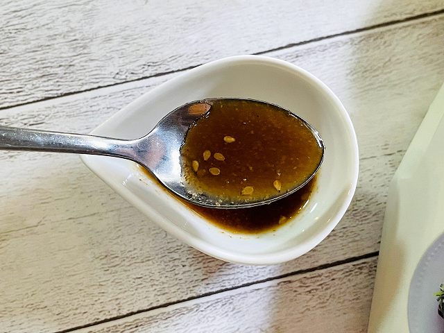 お皿に出してみると、サラッとしたテクスチャーの調味料です。