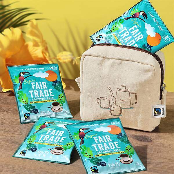 「カフェカルディドリップ 有機 フェアトレード コロンビア アネイ組合(4袋)」と「オリジナル スクエアポーチ」のセットです!