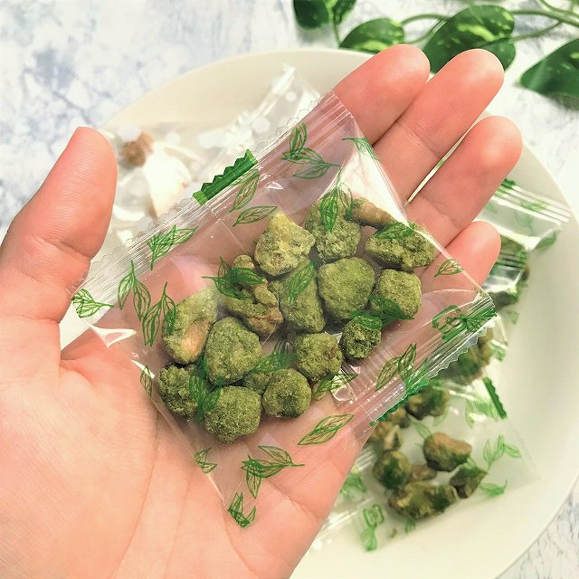 黒糖味と抹茶味を1袋ずつ食べても、120kcal程度です。