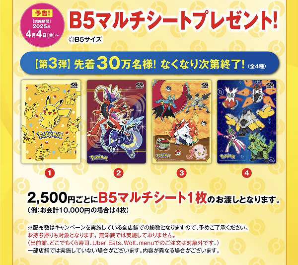 第3弾は、先着30万名様限定で、2,500円ごとにB5マルチシートが1枚もらえます!
