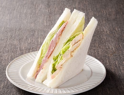 レタスの食感が楽しめる、ローストビーフとローストチキンのサンドイッチ。