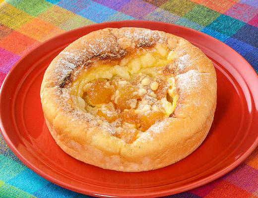 カスタードクリームの上に、シャキッと食感も美味しい焼りんごと、クランブルをのせました。