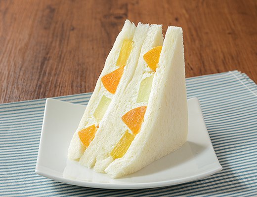 メロン、パイン、黄桃が楽しめるスイーツサンド。