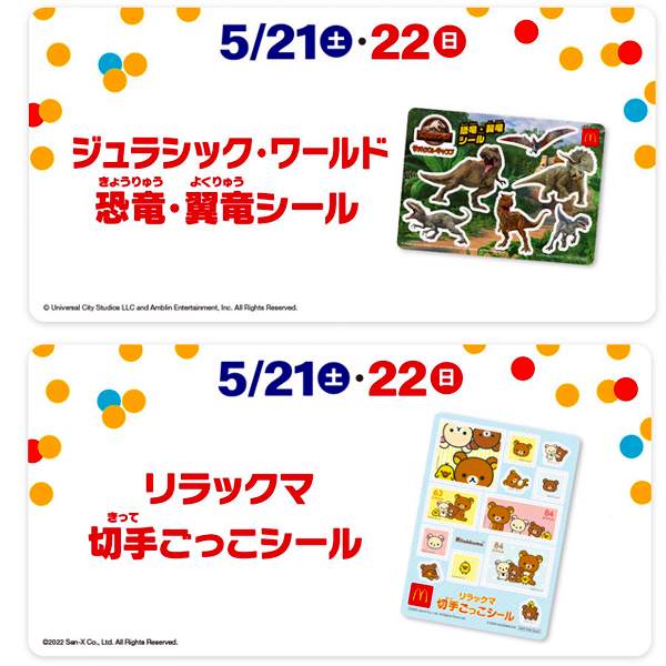 5月20日(金)から期間限定販売されるマクドナルドのハッピーセット「ジュラシック・ワールド/サバイバル・キャンプ&リラックマ」をご紹介しました。