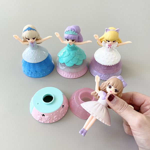 第1弾はアレンジ紐や付属のシールを使ってヘアアレンジを楽しむことができ、第2弾はミニスカートからロングスカートへの着せ替えや、他のドレスとパーツを入れ替えてリカちゃんの着せ替え遊びができます!