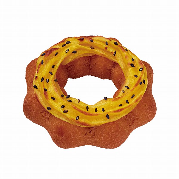 スイートポテトクリームを、ほくほく&しっとり食感のドーナツにトッピングし焼き上げられています!