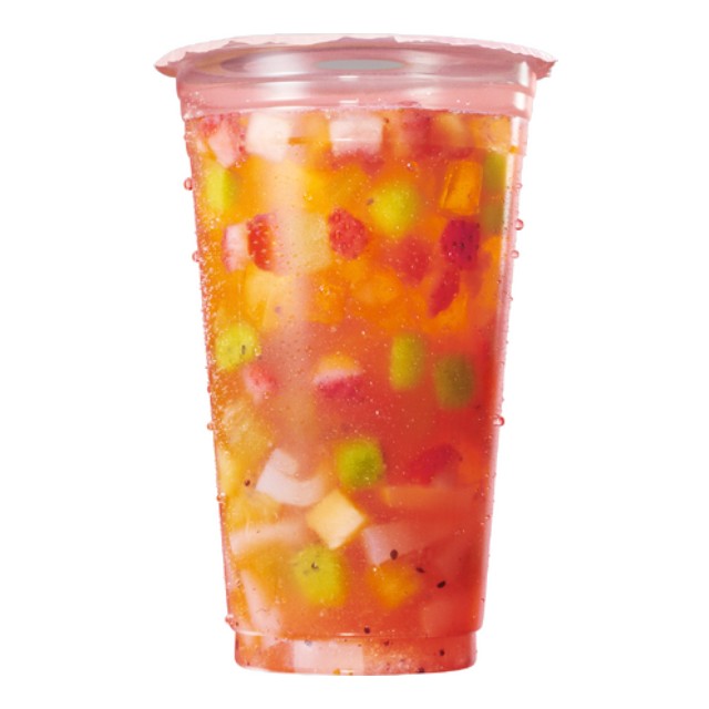 すっきりとした味わいのフルーツティーと、フレッシュな果肉とナタデココの食感を一度に味わえる贅沢ドリンク!
