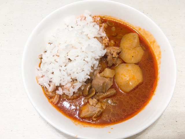 辛いのが苦手なため辛くないカレーシリーズばかりを食べていた私ですが、マッサマンカレーは大好きなココナッツミルクの香ばしい味につられて、パクパク食べきっちゃいました~♪