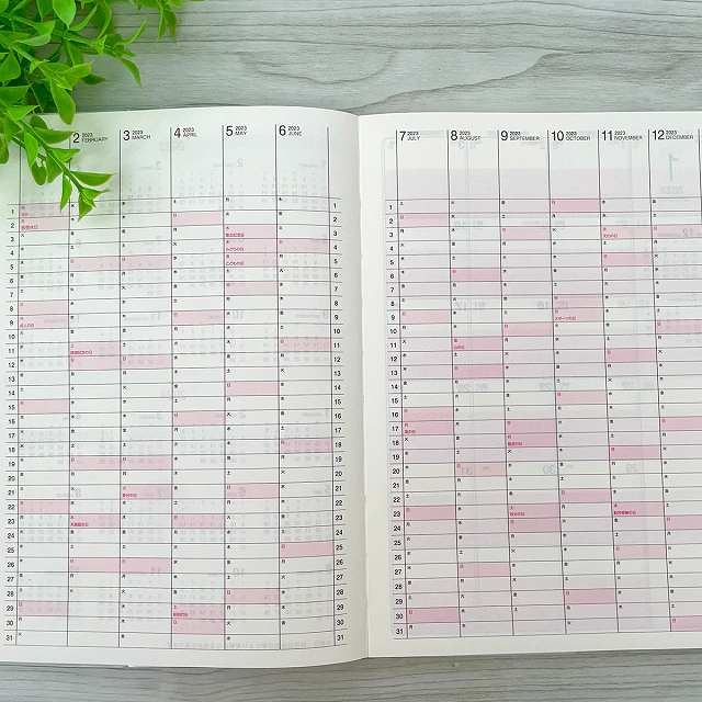 見開きの年間スケジュールも付いているので、先の見通しが立てやすいのも魅力ですね。