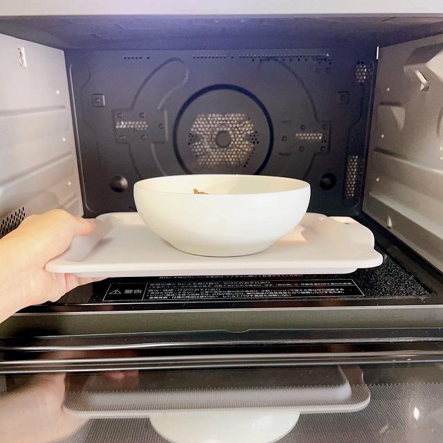 トレーは食器用洗剤で丸洗いできるので、温め中にこぼれてしまっても大丈夫!庫内の汚れ防止にもなりますね!