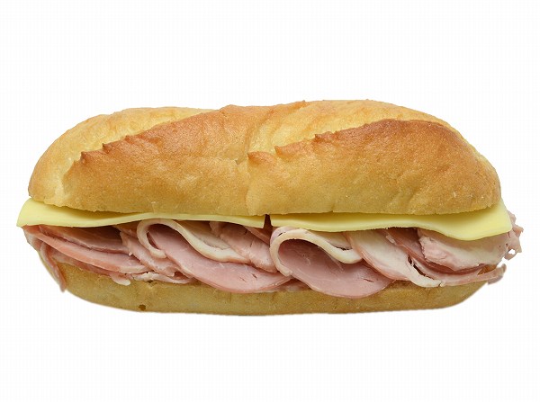 フランスパンの一種「バゲット」にロースハムとゴーダチーズを挟んだサンドイッチ!