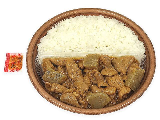 柔らかな豚ホルモンをピリ辛に味付けした御飯とよく合うもつ煮弁当です。