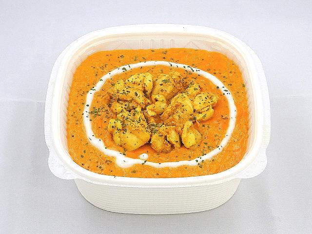 にんにくや生姜を香りが出るまで炒め、トマトや玉葱、ココナッツミルクなどを加えて煮込んだ、コクのある味わいのバターチキンカレー。