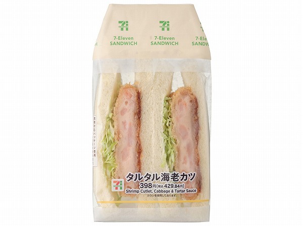 海老の剥き身を使用した食感の感じられる海老カツに、相性の良いタルタルソースとキャベツを組み合わせたサンドイッチです。