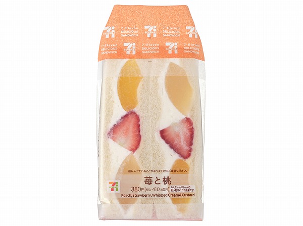 いちご、黄桃、白桃を使用したフルーツサンドです。