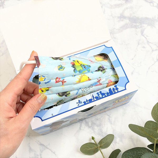 水色のマスクにウッディやバズ・ライトイヤー、ダッキー&バニーなどが描かれ可愛すぎるデザイン!