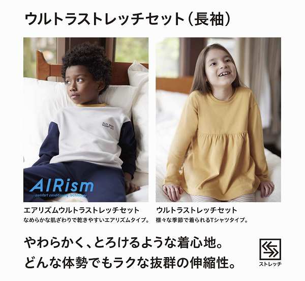 商品名:KIDS エアリズムウルトラストレッチセット(カラーブロック・長袖)